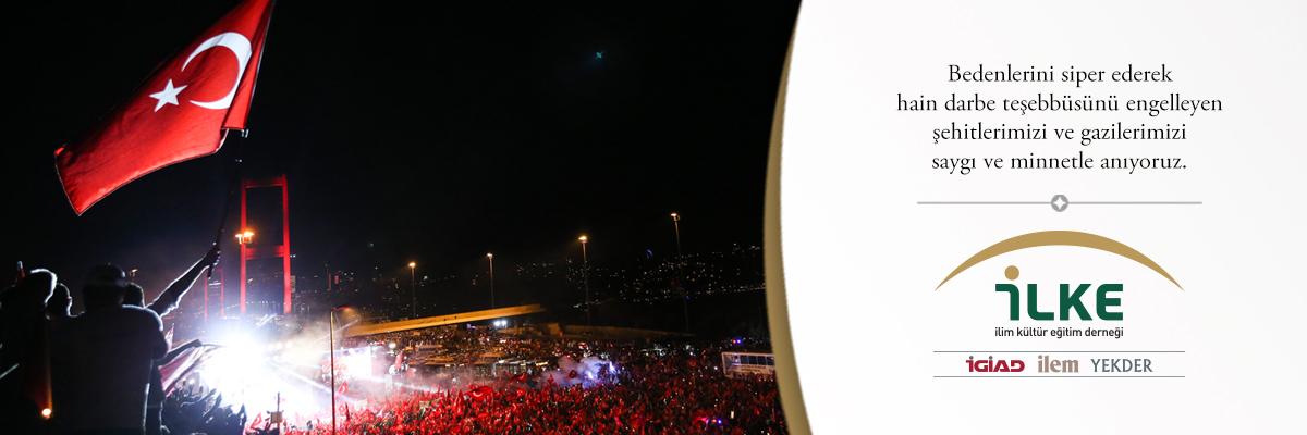 15 Temmuz hain darbe teşebbüsünün yıl dönümünde İLKE ve kurumları olarak (İGİAD, İLEM, YEKDER) bedenlerini siper ederek hain darbe girişimini engelleyen şehitlerimizi ve gazilerimizi minnetle anıyoruz.