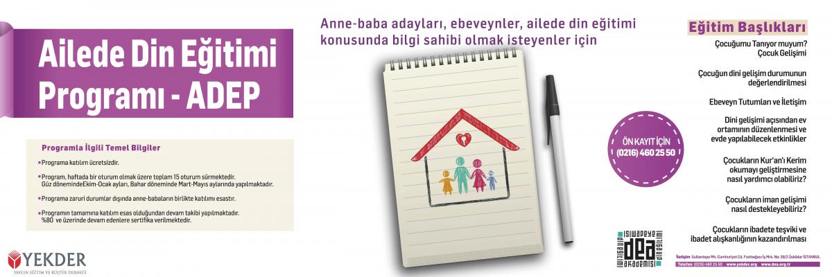 Yekder Yaygın Eğitim ve Kültür Derneği (YEKDER), ebeveynlerin; çocuklarının din eğitimine nitelikli katkı yapmalarına yardımcı olmak amacıyla Ailede Din Eğitimi Programı (ADEP)'i geliştirdi.